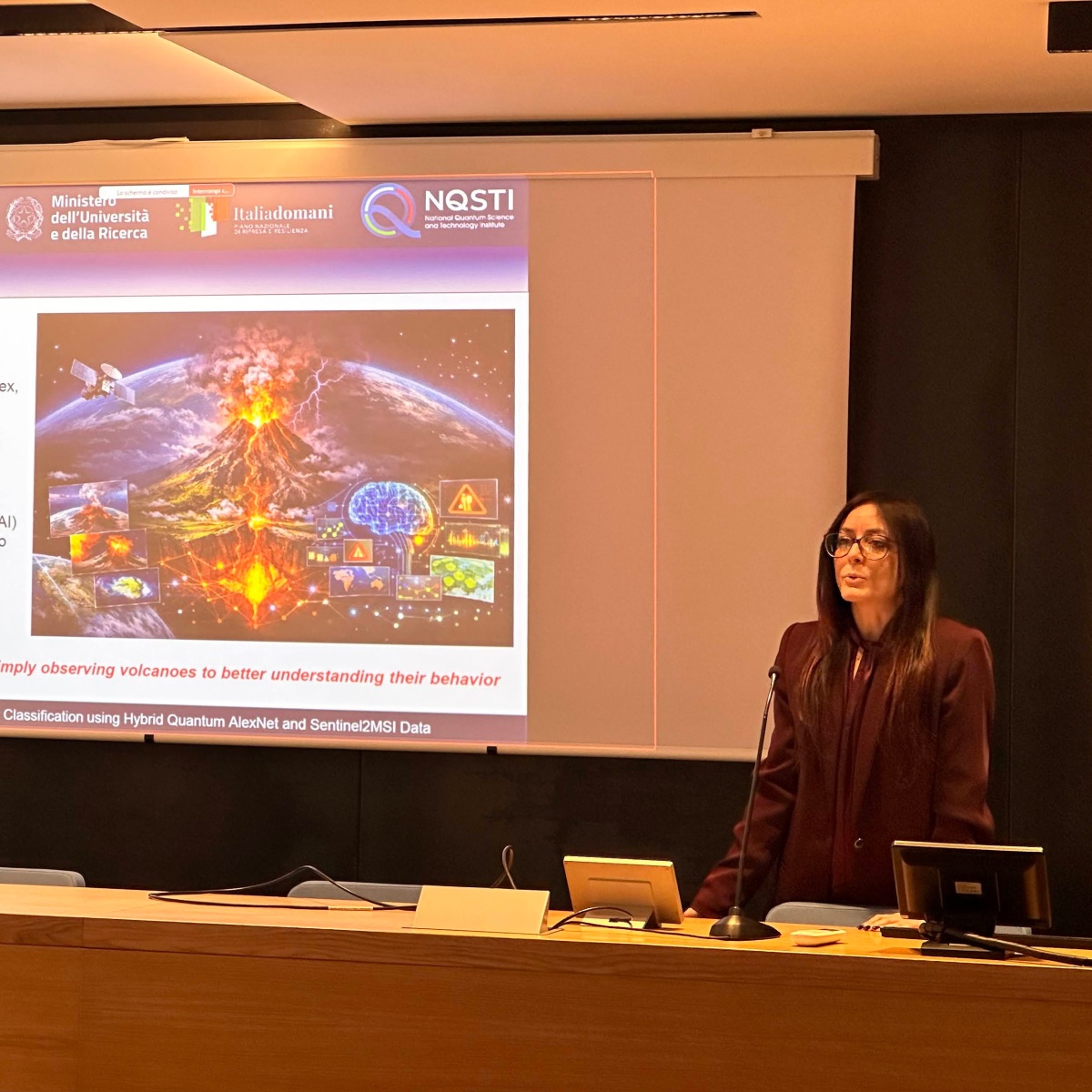 • Dott.ssa C. Corradino, Eruptive Activity Classification using Hybrid Quantum AlexNet and Sentinel-2 MSI Data (Academic supervisor: Prof.ssa Elisabetta Paladino; Industrial supervisors: Prof. Luigi Giannelli – DFA UniCT, Dr. Luca Crippa – IBM)