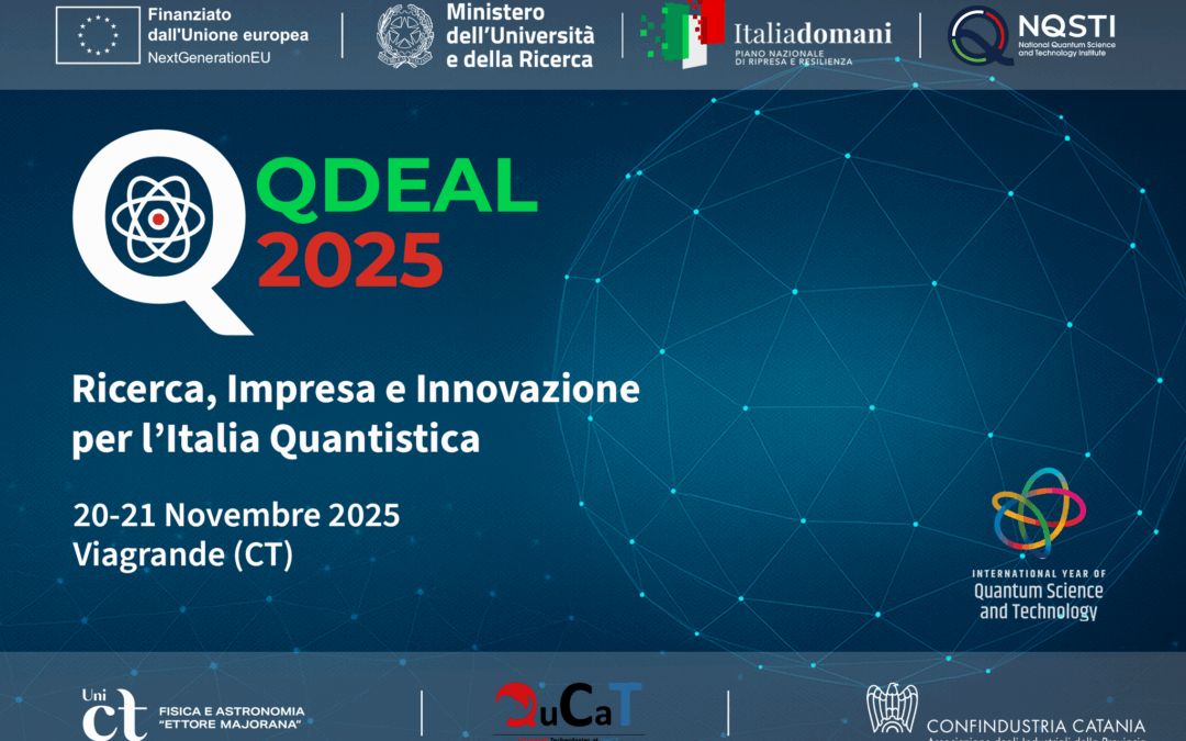 L’evento è organizzato dall’Istituto Nazionale di Scienza e Tecnologia Quantistica (NQSTI), un consorzio finanziato nell’ambito del PNRR nel quadro di Next Generation EU, da Confindustria Catania e dall’iniziativa QuCaT dell’Università di Catania.
