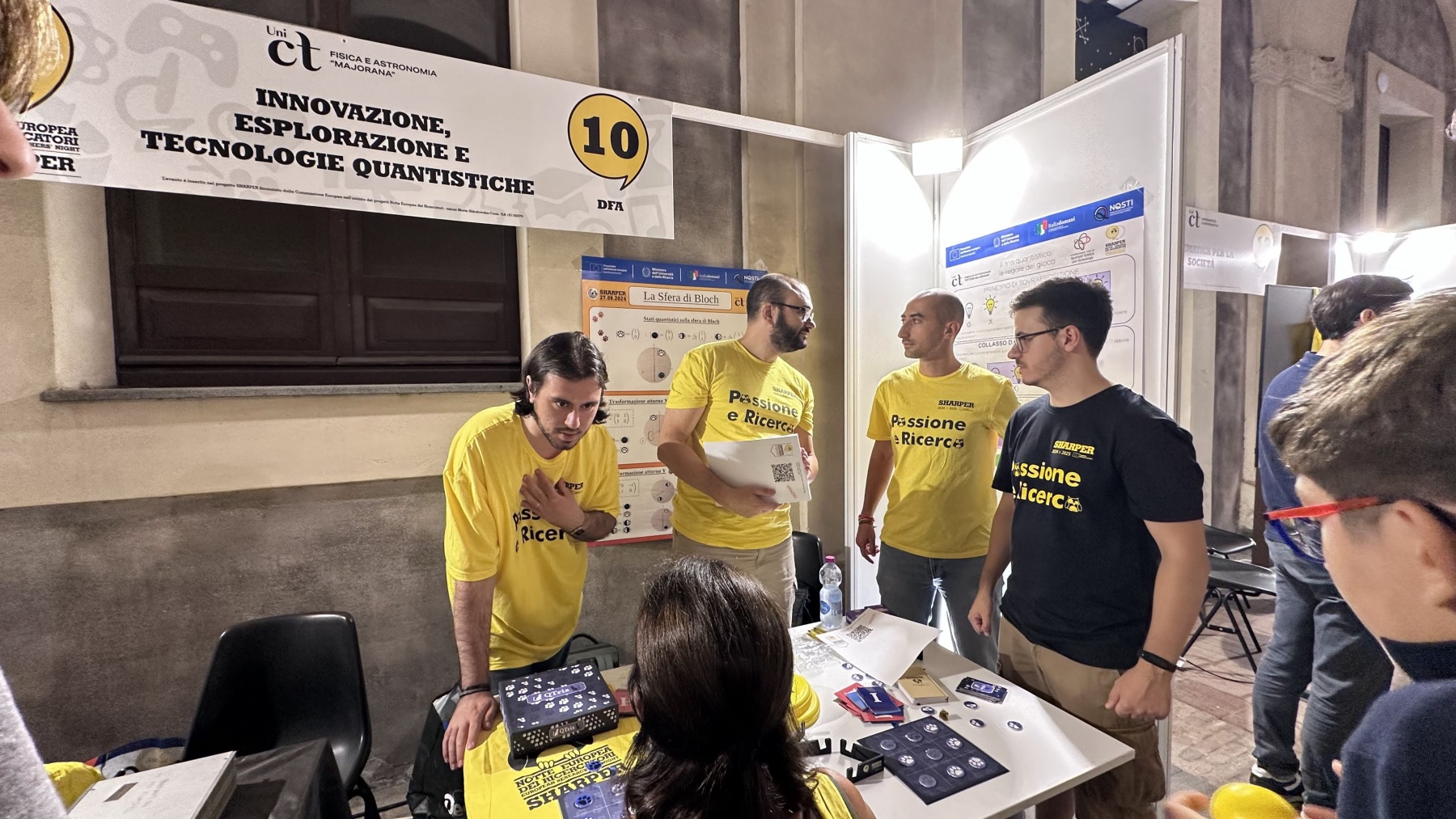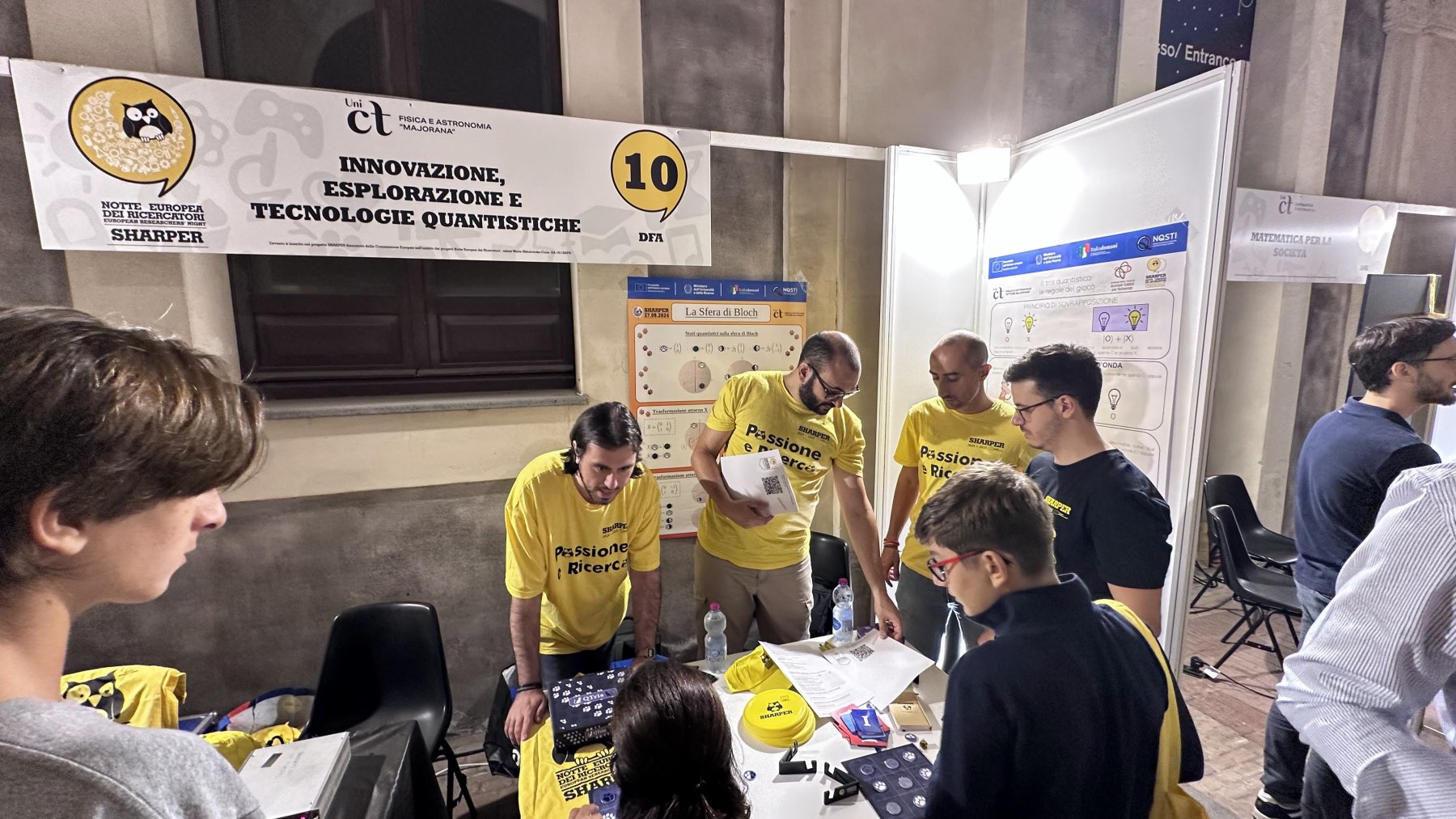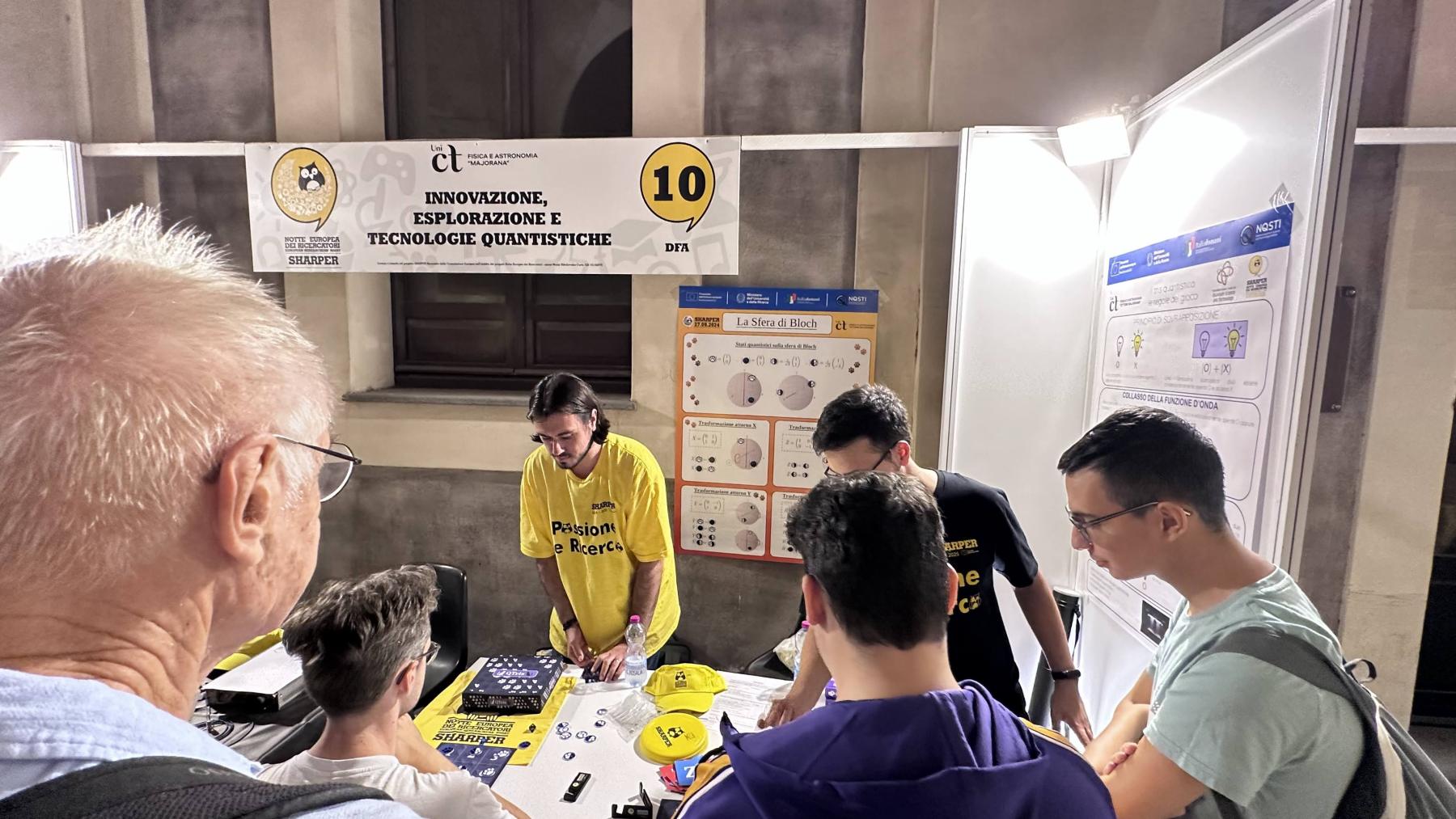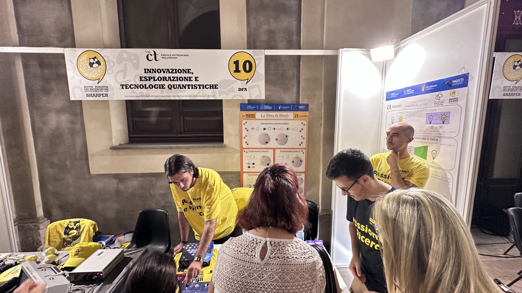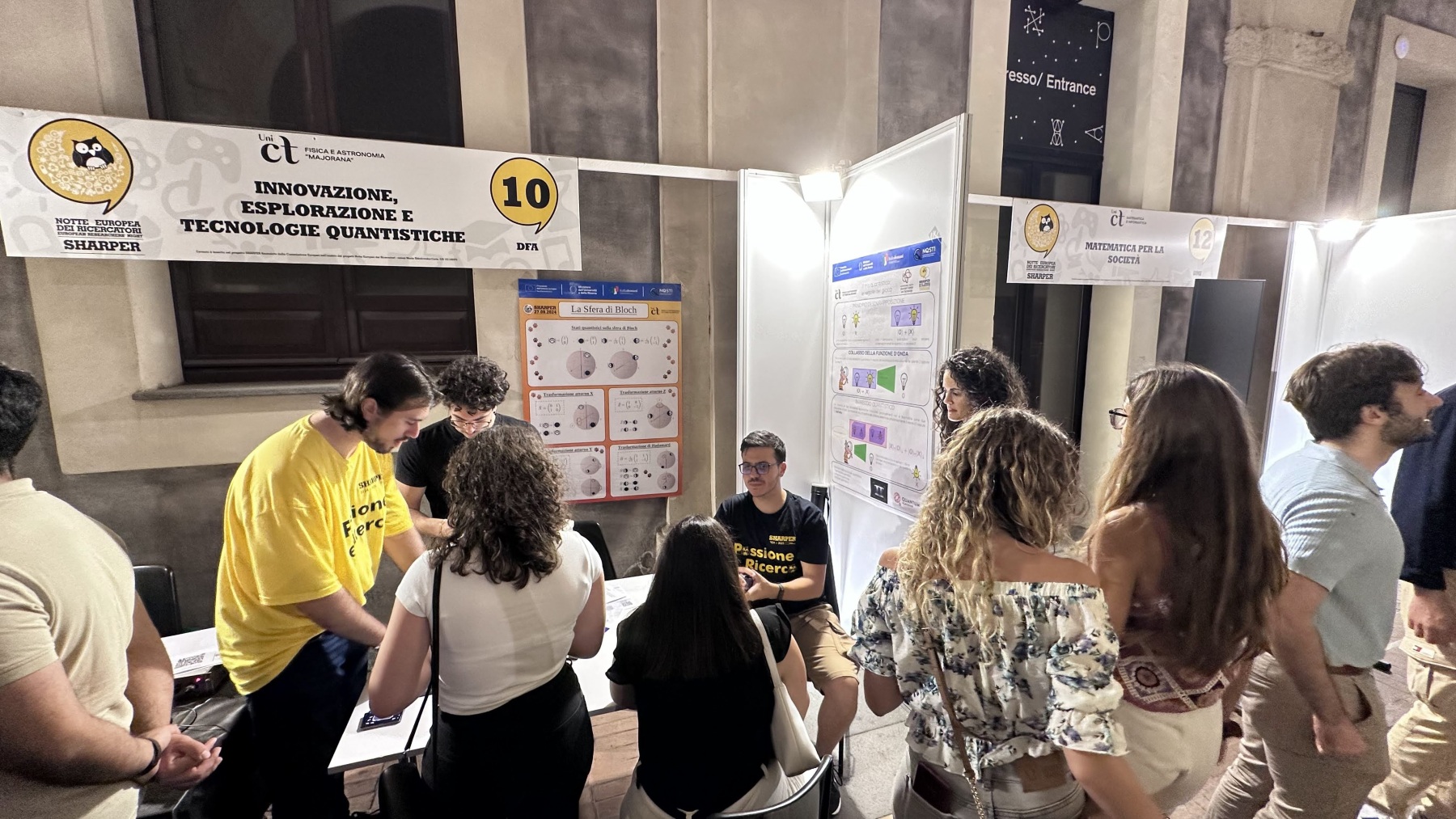 Giorno 26 settembre 2025, al Palazzo Platamone in Catania, giovani ricercatori del QuCaT al DFA UniCT hanno preso parte a Sharper Night, la Notte Europea dei Ricercatori e delle Ricercatrici.