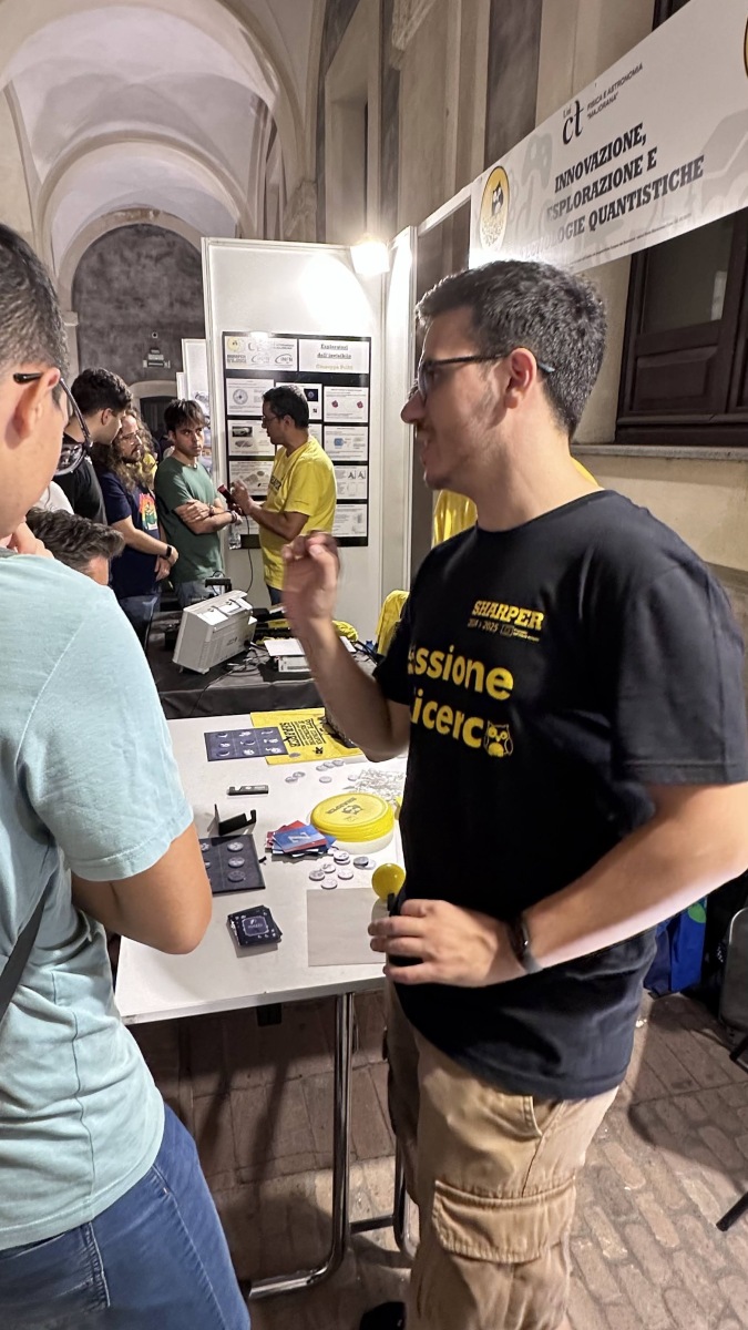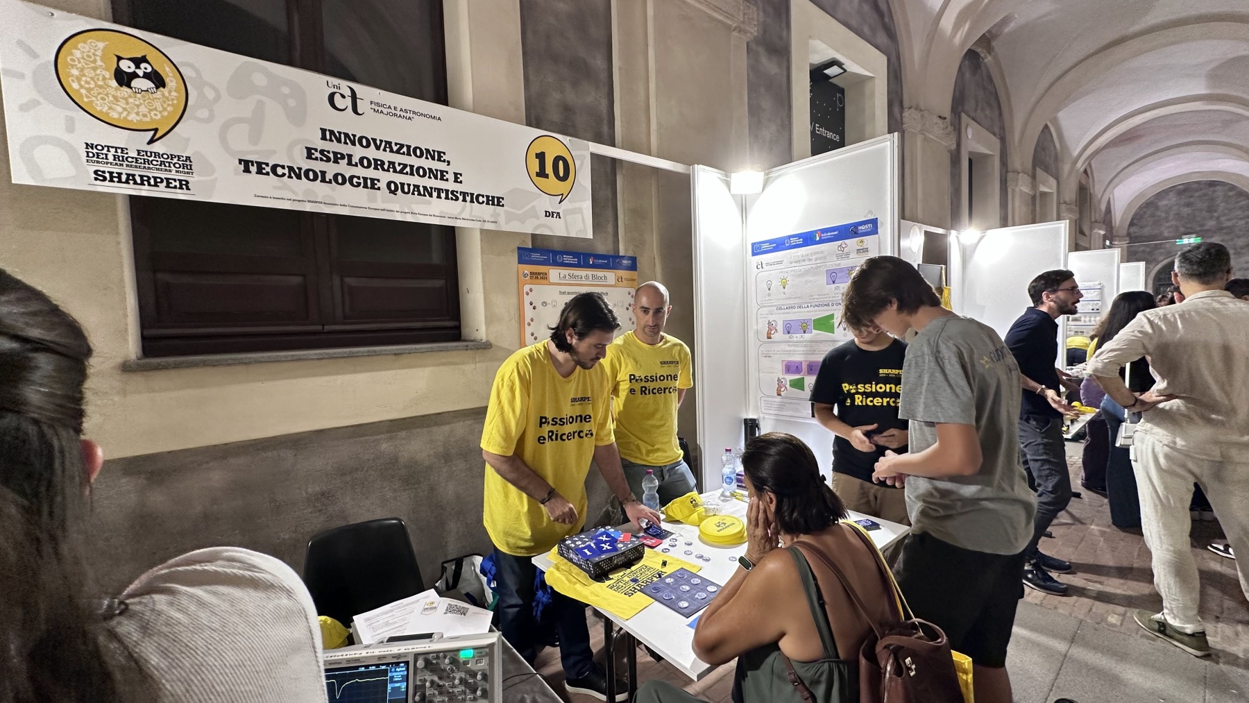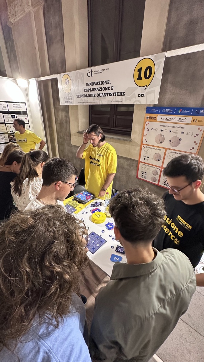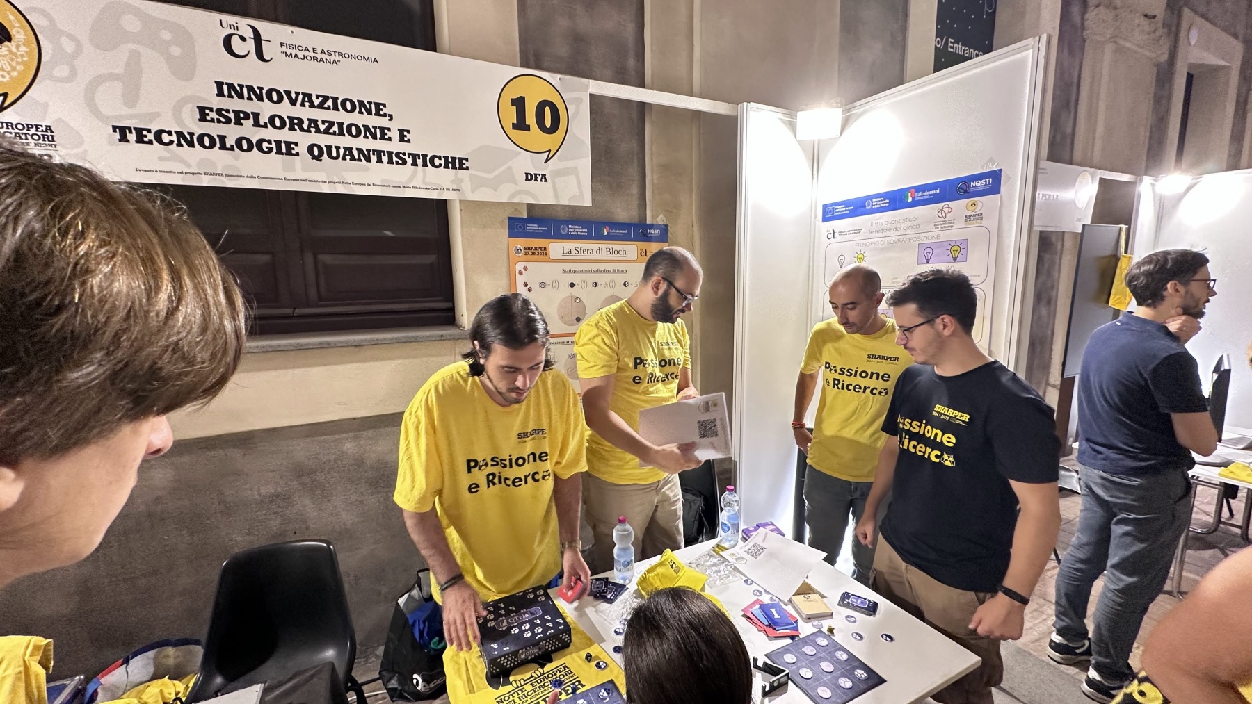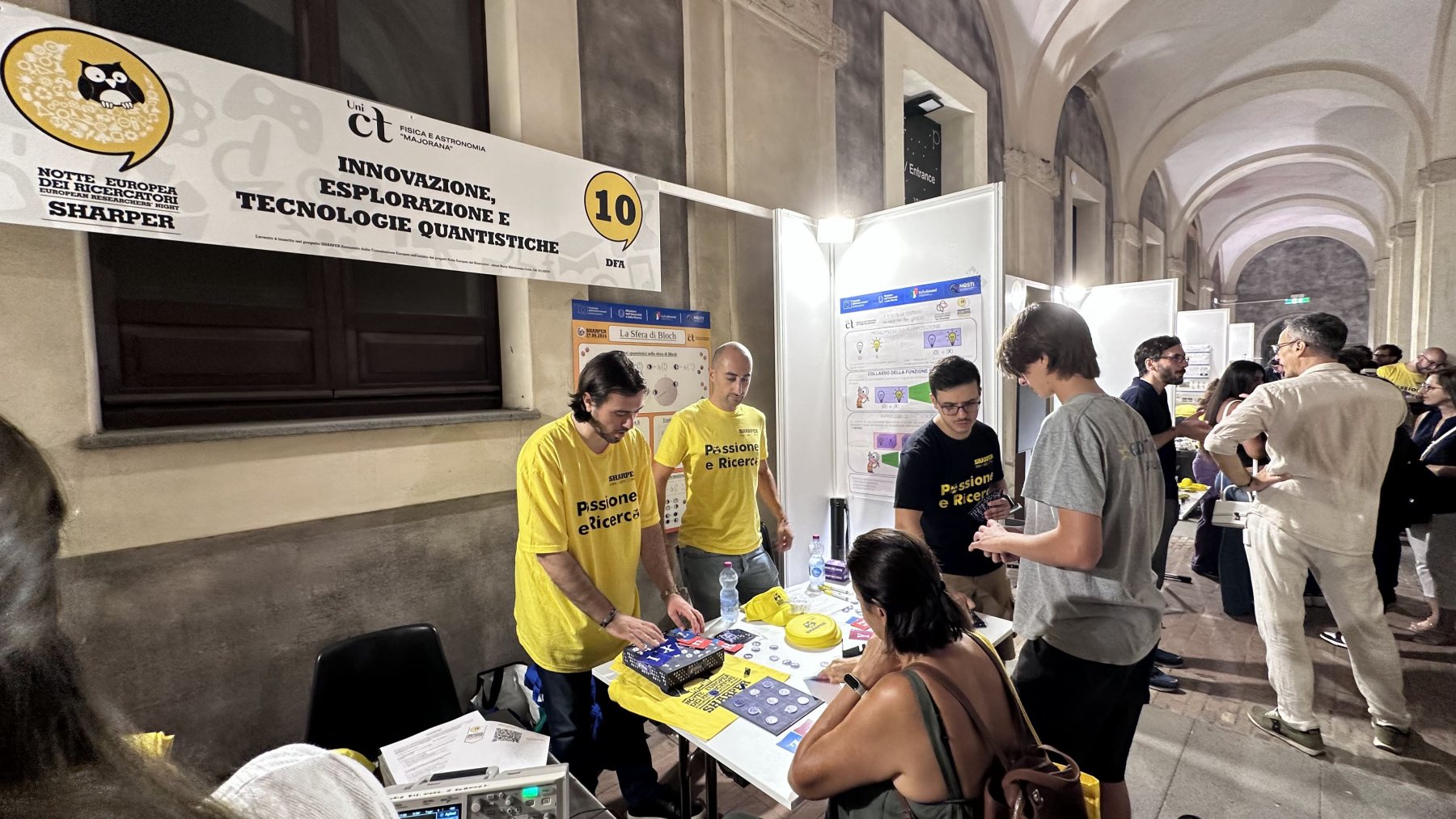 Giorno 26 settembre 2025, al Palazzo Platamone in Catania, giovani ricercatori del QuCaT al DFA UniCT hanno preso parte a Sharper Night, la Notte Europea dei Ricercatori e delle Ricercatrici.
