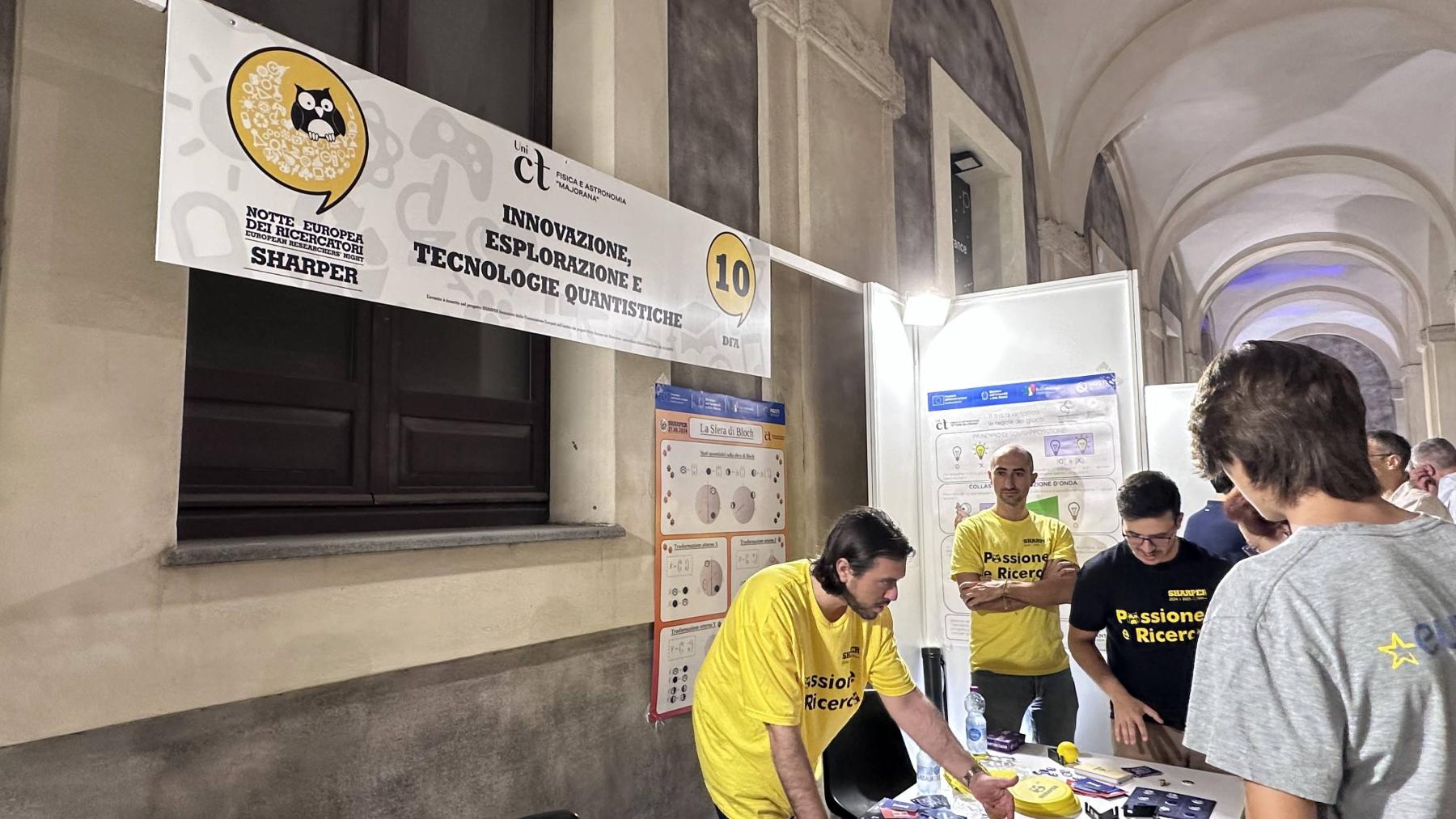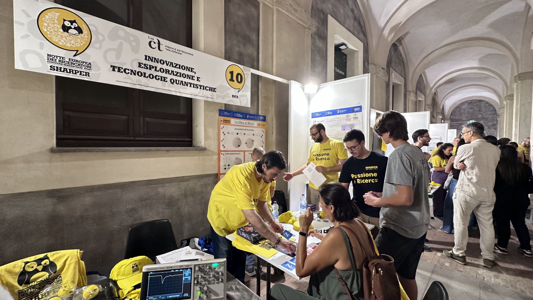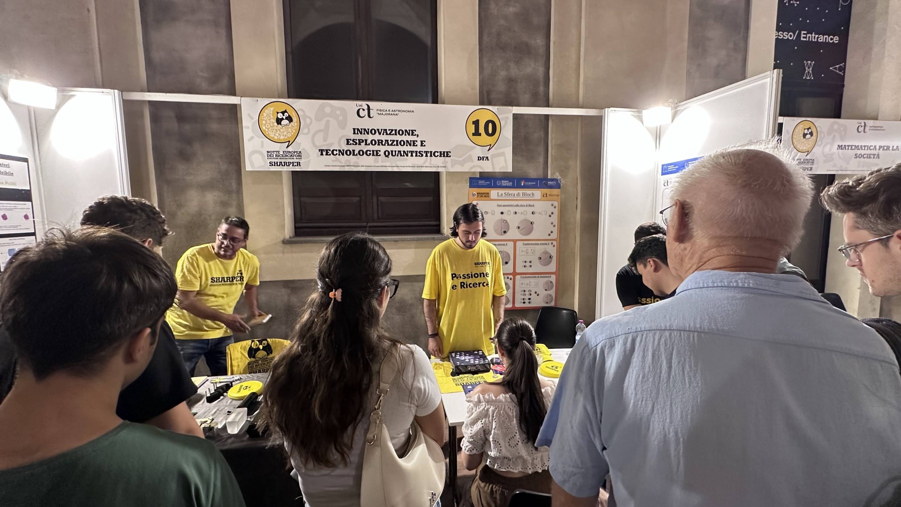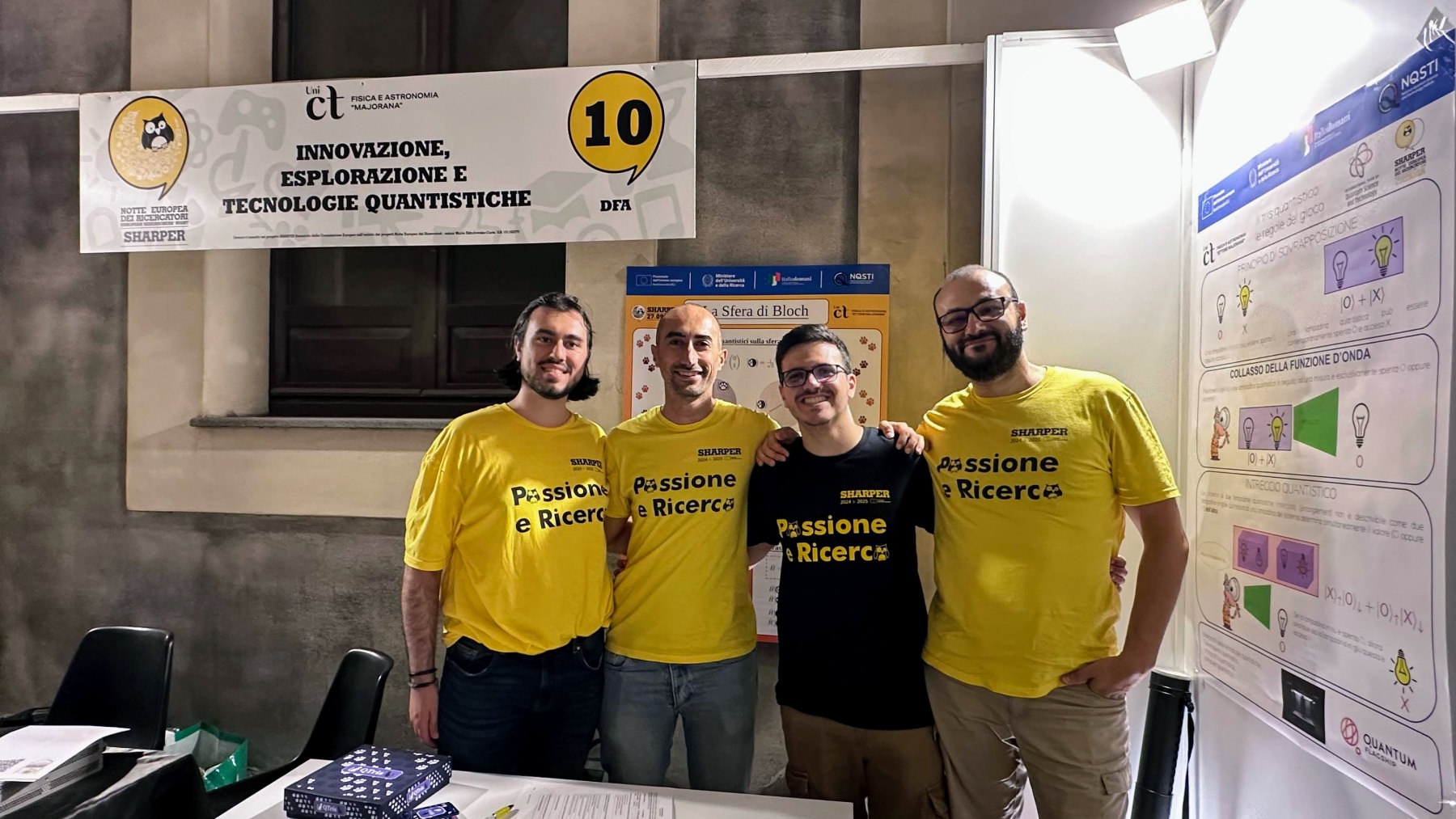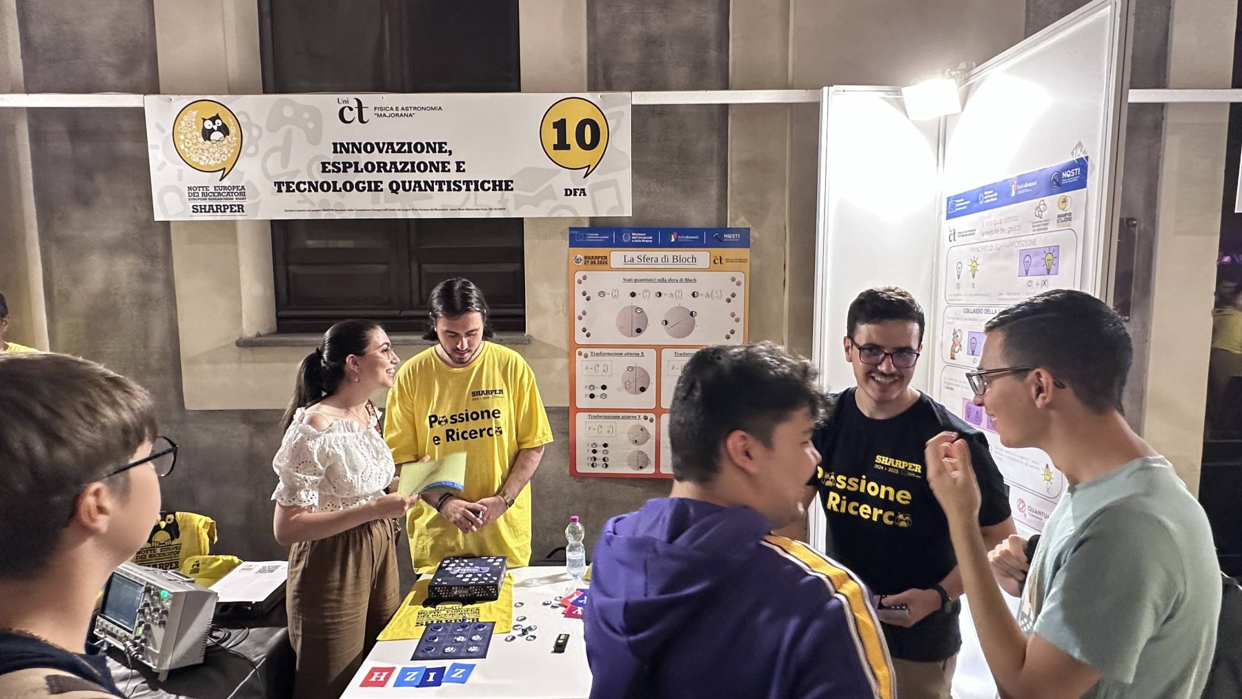 Giorno 26 settembre 2025, al Palazzo Platamone in Catania, giovani ricercatori del QuCaT al DFA UniCT hanno preso parte a Sharper Night, la Notte Europea dei Ricercatori e delle Ricercatrici.