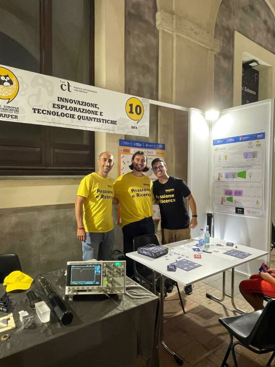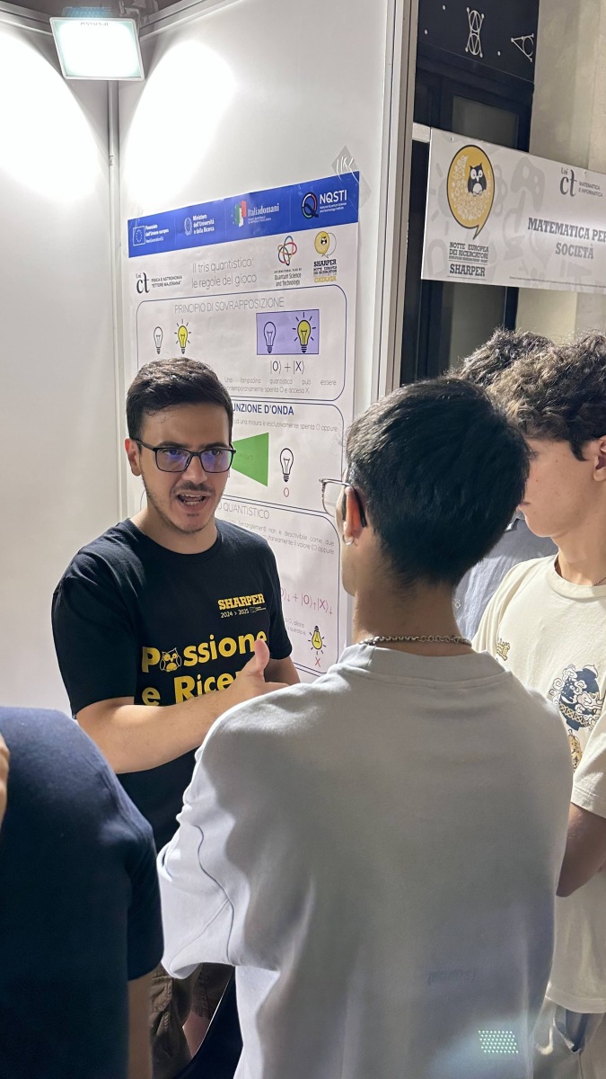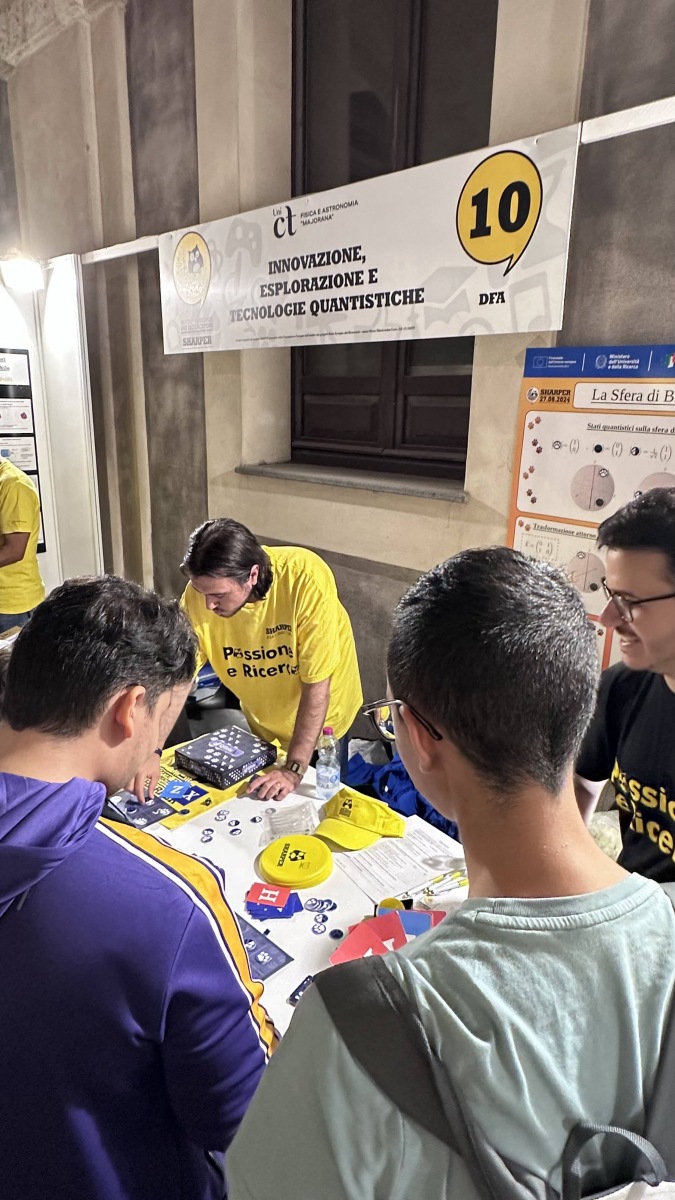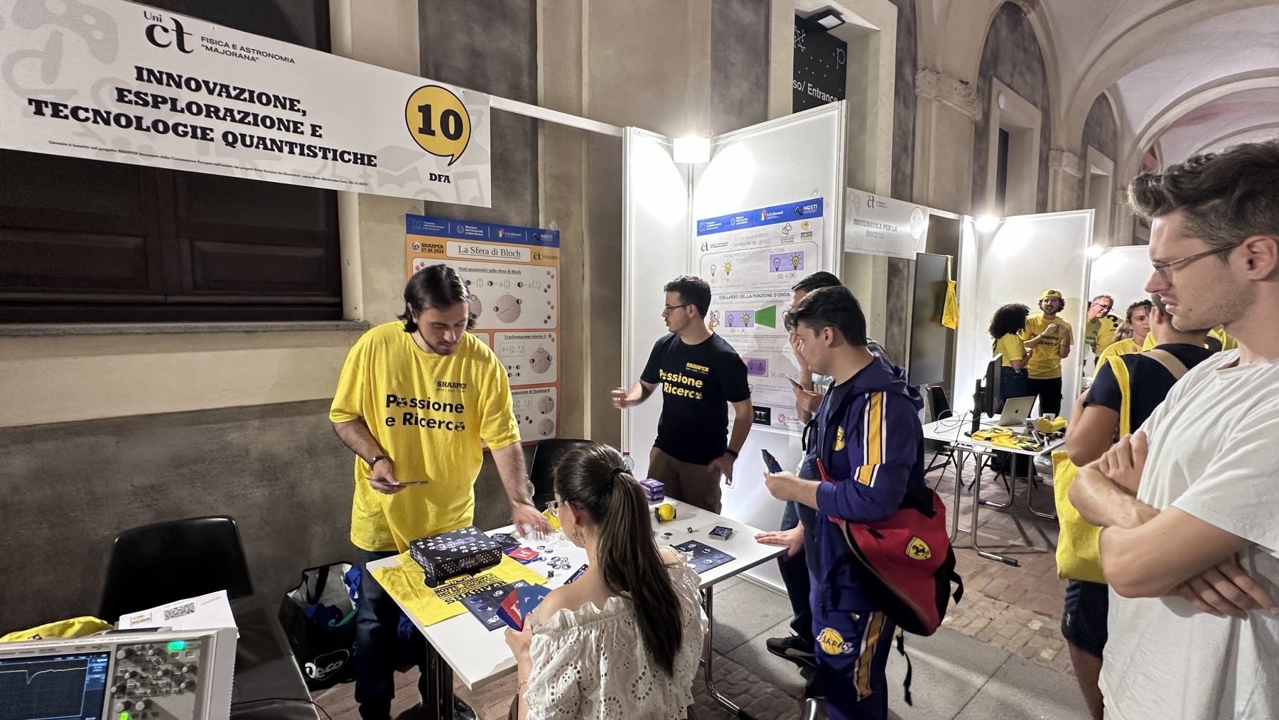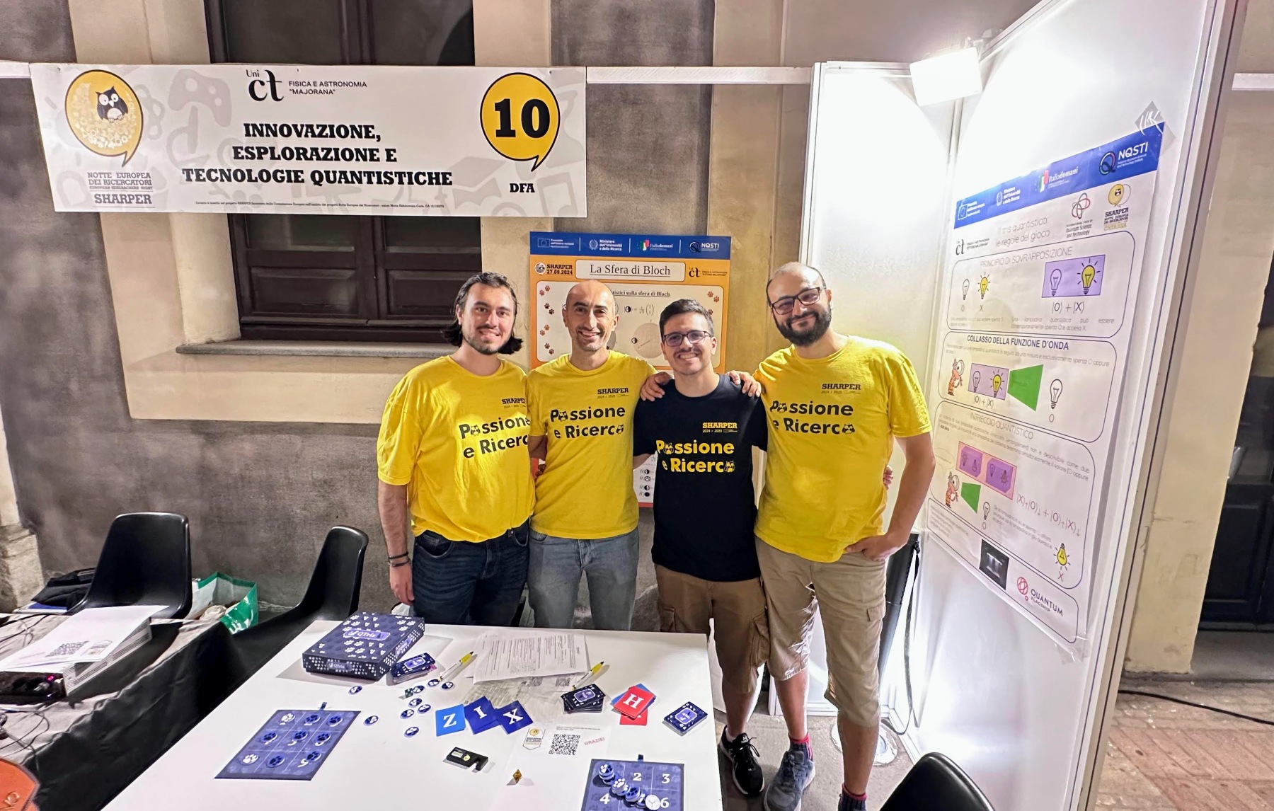 Giorno 26 settembre 2025, al Palazzo Platamone in Catania, giovani ricercatori del QuCaT al DFA UniCT hanno preso parte a Sharper Night, la Notte Europea dei Ricercatori e delle Ricercatrici.