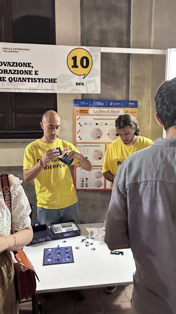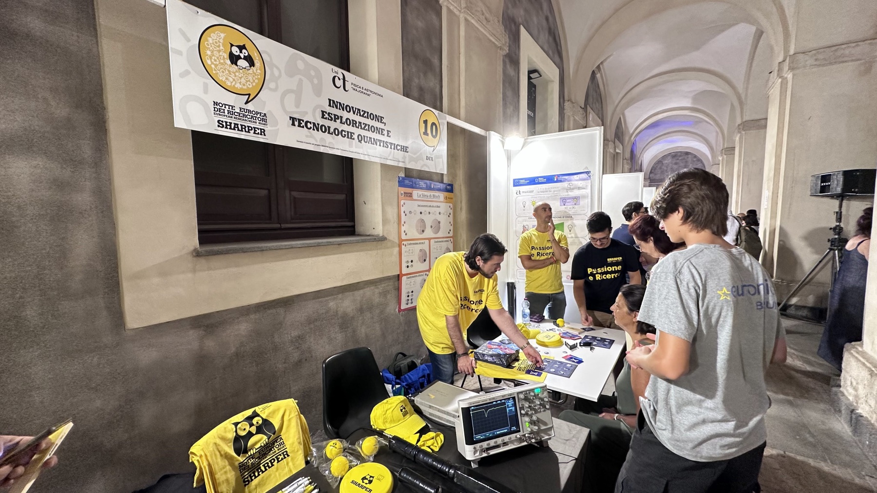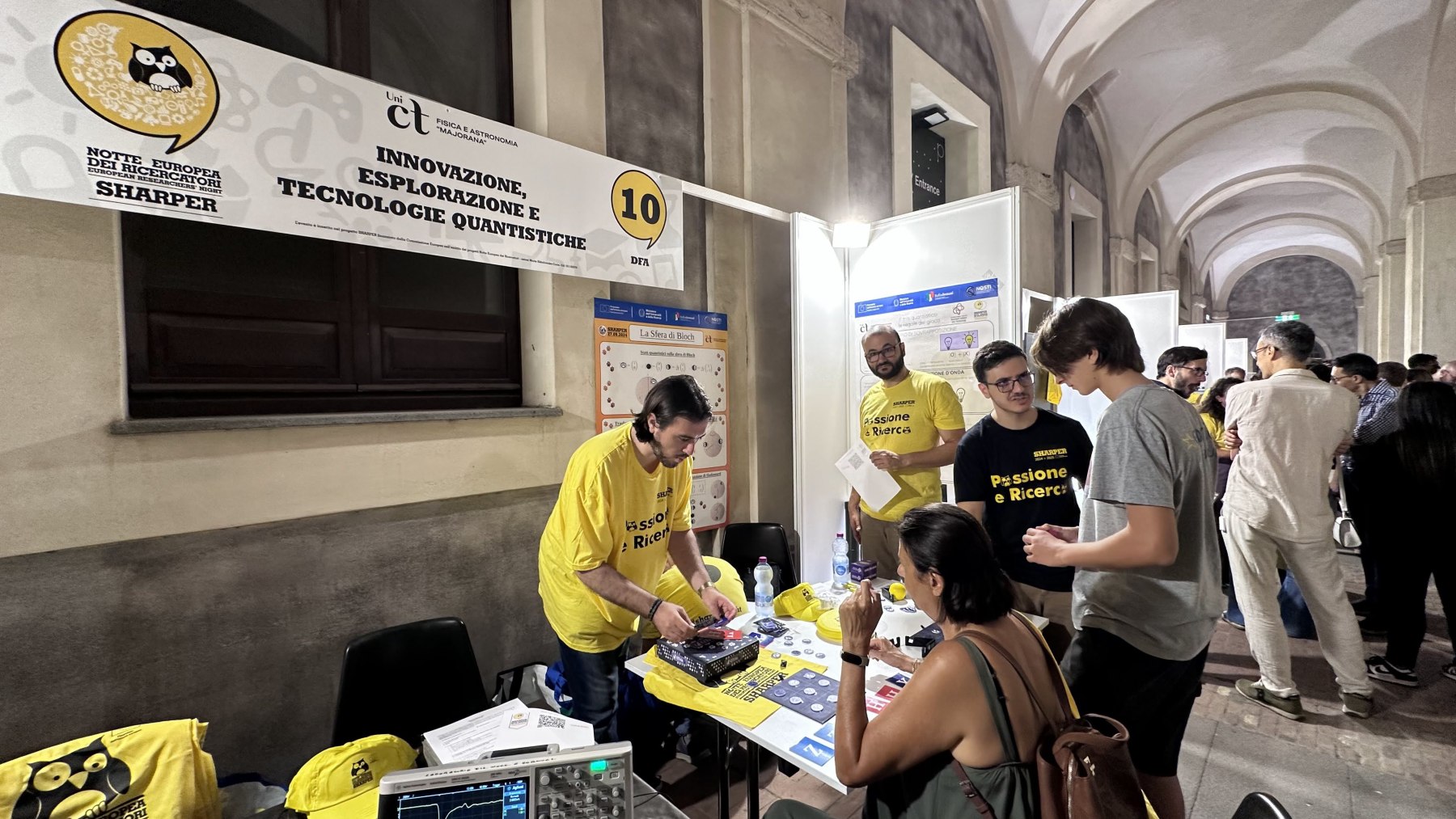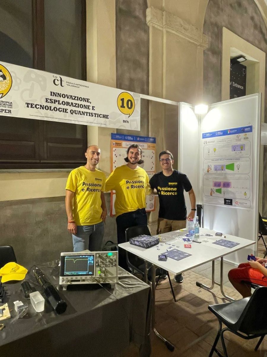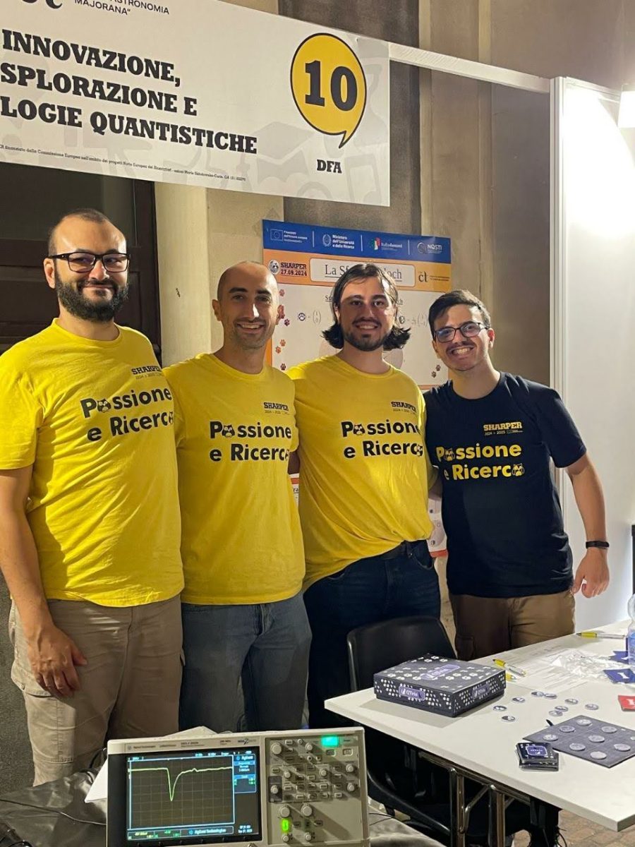 Giorno 26 settembre 2025, al Palazzo Platamone in Catania, giovani ricercatori del QuCaT al DFA UniCT hanno preso parte a Sharper Night, la Notte Europea dei Ricercatori e delle Ricercatrici.